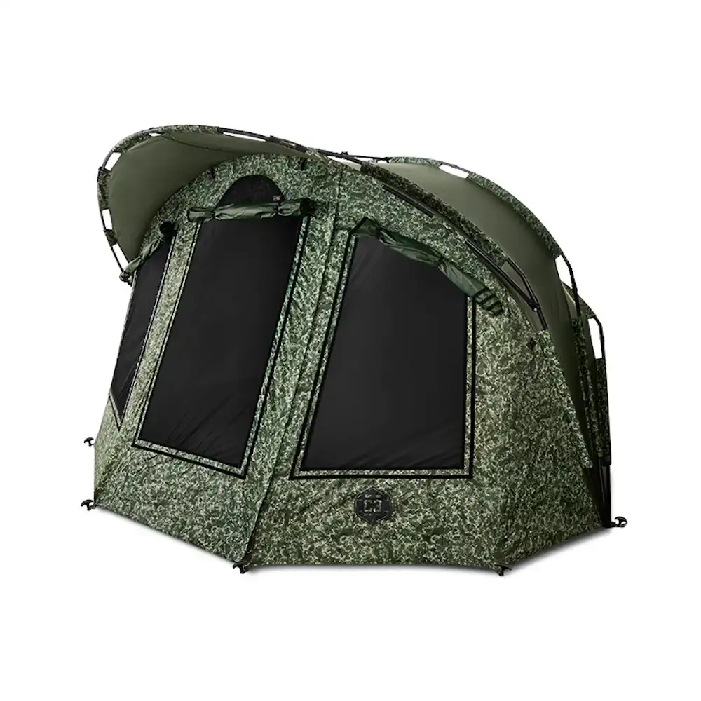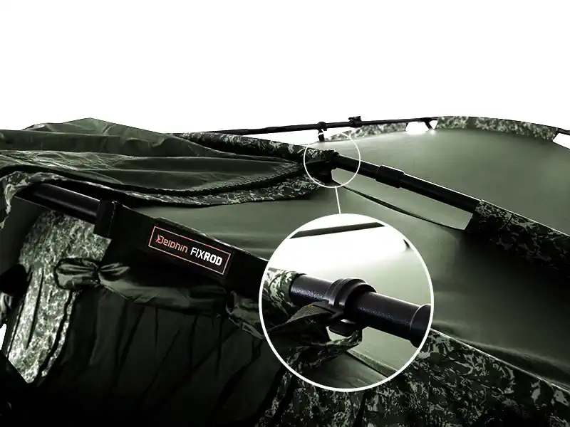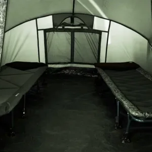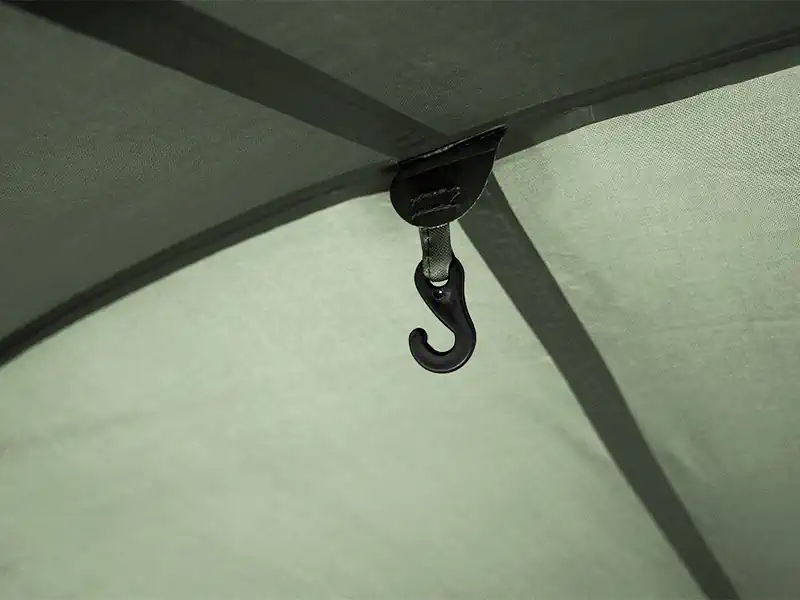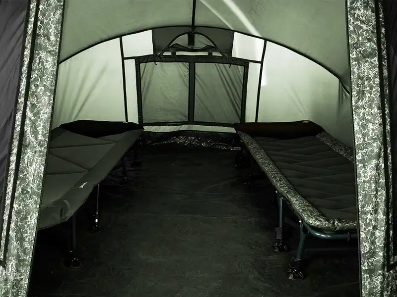 Teltta on riittävän tilava kahdelle vuoteelle, ja samalla jää hyvin liikkumatilaa sekä tilaa varusteille kaikkeen, mitä tarvitset mukavaan oleskeluun veden äärellä. Tarvittaessa sisään mahtuu jopa kolme vuodetta. Teltta on varustettu kahdella hihnalla vapojen kiinnittämiseen sekä suurella etukatoksella, joka suojaa auringolta ja sateelta. Sisäpuolella on kaksi kattoon sijoitettua koukkua lampulle tai muille varusteille.