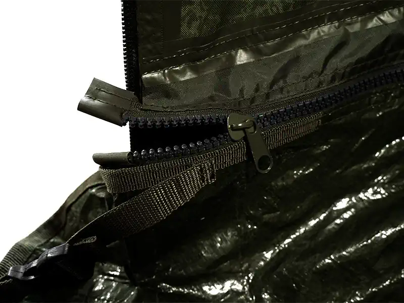 Teltassa on vakiona pohjakangas, joka kiinnittyy laadukkaalla vetoketjulla koko reunaa pitkin. Ei likaa eikä ei-toivottuja vierailijoita!