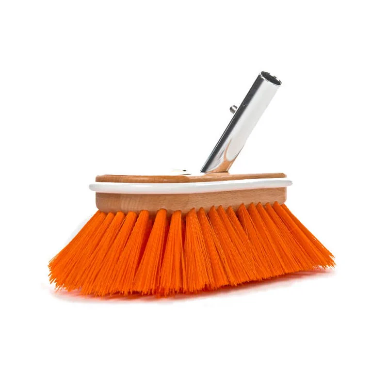75 mm pitkät oranssit PVC-harjakset on kiinnitetty tukevasti puurunkoon korroosionkestävillä kiinnikkeillä.