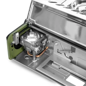 Tämä on poikkeuksellisen vakaa malli, joka seisoo neljän jalan varassa. Liesi toimii luotettavasti sekä pöydällä että maassa. Kestävä ja reilun kokoinen ritilä mahdollistaa turvallisen ruoanlaiton myös suuremmalla kattilalla tai pannulla. Sekä ritilä että rungon osat on valmistettu ruostumattomasta teräksestä, mikä kestää hyvin kuumuutta ja on helppo puhdistaa. Ritilän aukot estävät astioiden liukumisen sekoittamisen aikana.