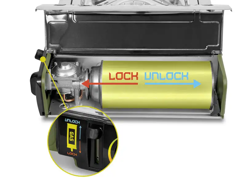 Liesi toimii CP250-tyypin propaani-butaani kaasupatruunalla (400 ml). Siinä on kaksivaiheinen turvajärjestelmä, joka varmistaa turvallisen käytön. Ennen sytytystä patruuna kiinnitetään paikalleen etupaneelin vivulla, mikä vähentää kaasuvuodon riskiä.