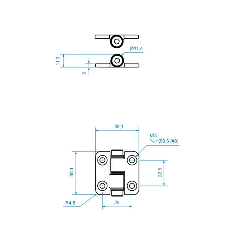 Pöytäsarana 38x76mm AISi316