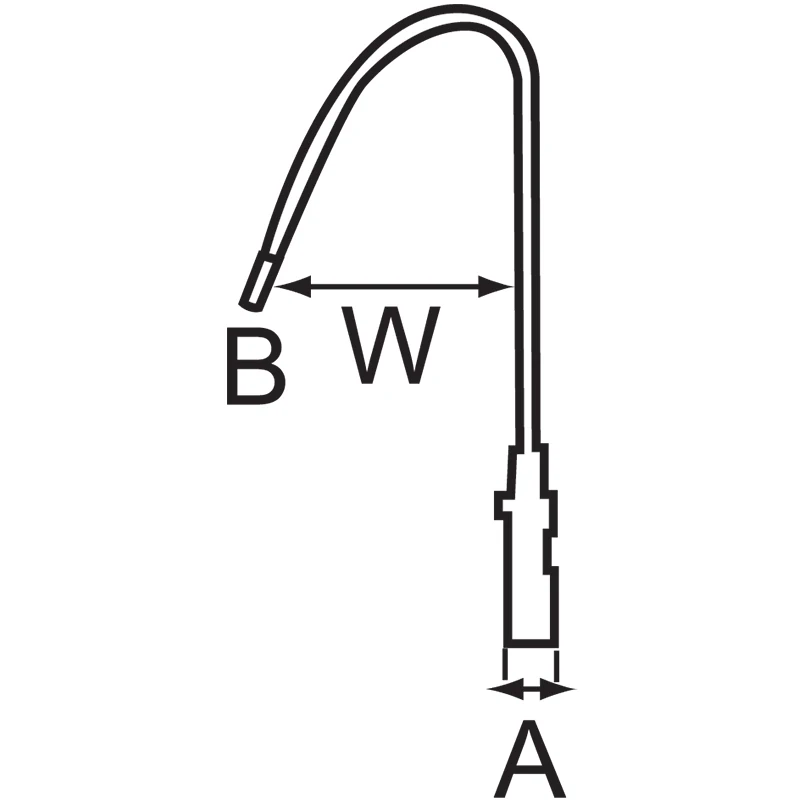 Koukun varren halkaisija (B): 8 mm, jäykkä ruostumaton teräs.