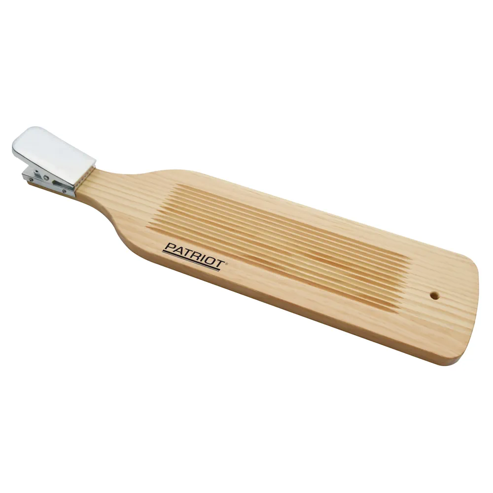 Patriot puinen perkuulauta jousiklipsillä on suunniteltu erityisesti kalan perkaukseen ja fileointiin. Laudan päässä oleva metallinen puristin pitää kalan tukevasti paikoillaan pyrstöstä, mikä helpottaa käsittelyä ja tekee työskentelystä sujuvampaa.