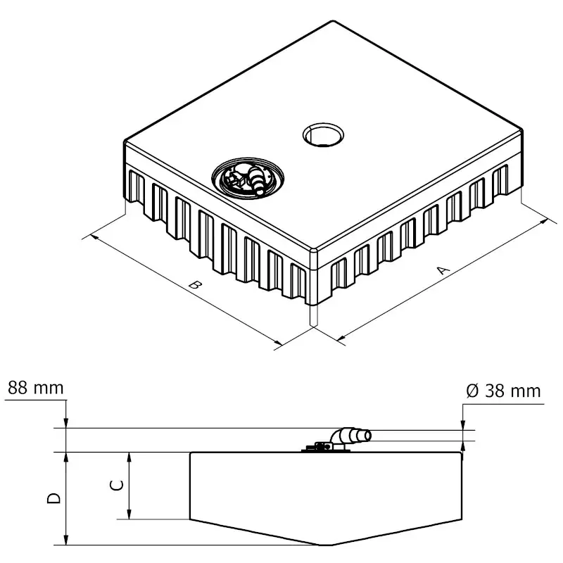 A= 1100 mm, B= 1000 mm, C= 262 mm