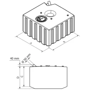 Lisäksi kannessa on valmius S5-tyypin polttoainemittarin asentamiseen sekä 1/4″ adapteri polttoaineen lisäulostulolle tai dieselpolttoaineen paluuvirtausta varten.