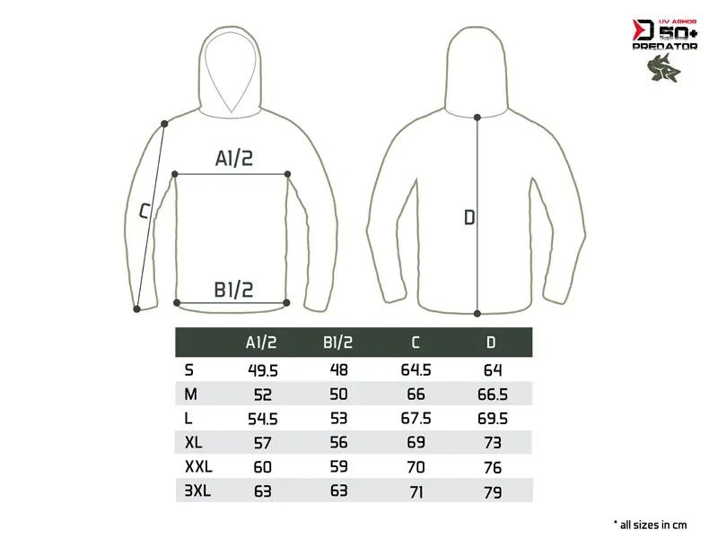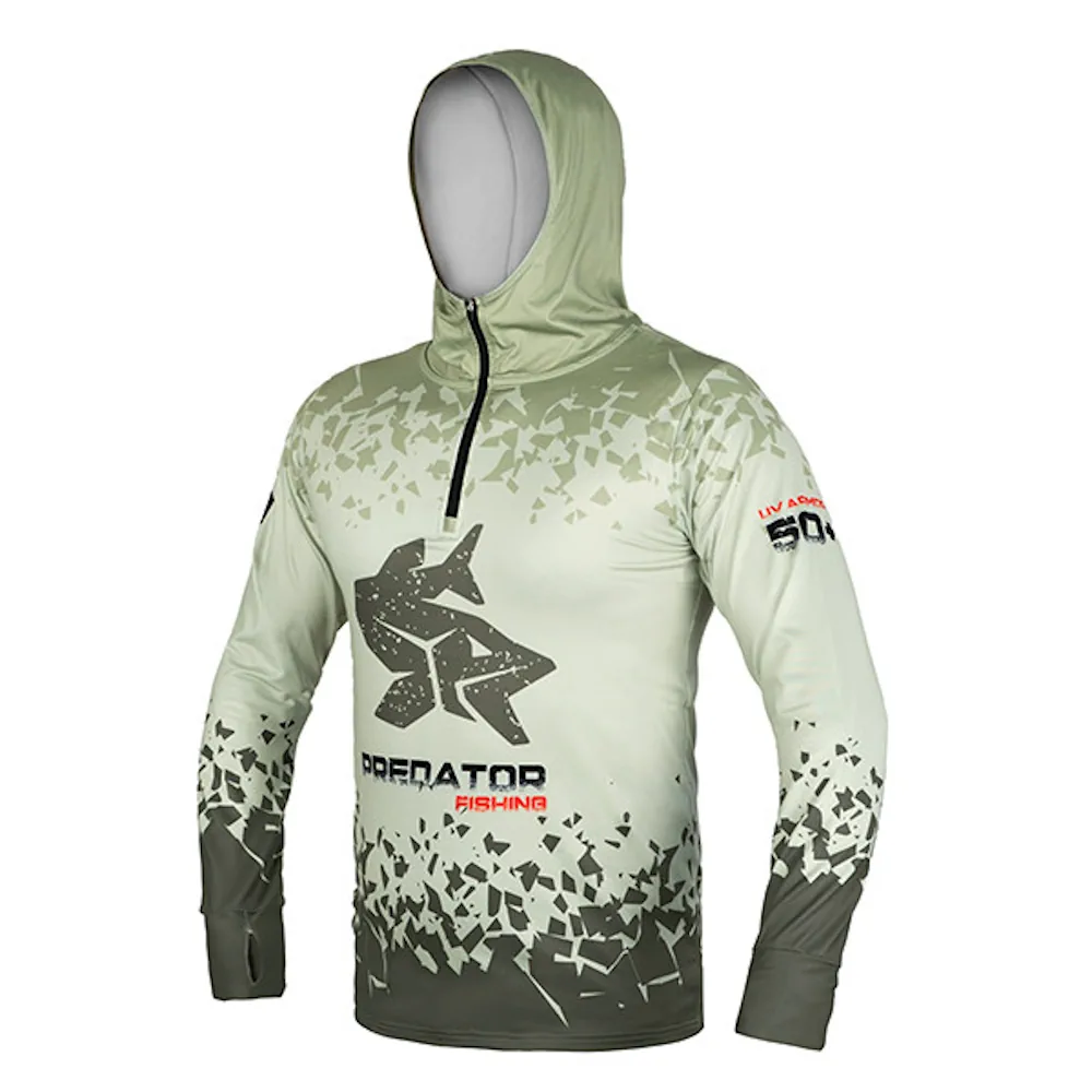 Kaikille kalastajille suunniteltu hupullinen kalastuspaita Predator UV ARMOR 50+, joka suojaa kuumina kesäpäivinä suoralta UV-säteilyltä. UPF 50+ -kangas estää 98 % haitallisesta UV-säteilyistä ja auttaa ehkäisemään auringonpolttamia. Materiaali tuntuu viileältä iholla myös kuumalla säällä.