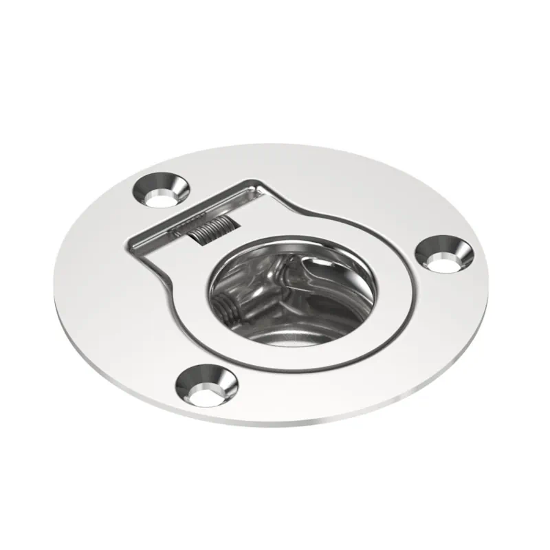 Korkealaatuinen Roca-nostokahva jousella, halkaisija 55mm. Valmistettu sähkökiillotetusta AISi316 ruostumattomasta teräksestä ja suunniteltu erityisesti meriympäristöön.