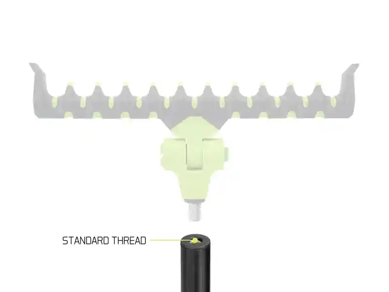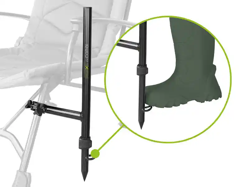 Kyseessä on käytännöllinen feeder-vapateline, joka on suunniteltu erityisesti käytettäväksi erilaisten REAXE-etutelineiden kanssa. Se perustuu T-muotoiseen alumiinirakenteeseen, jossa on muovikiinnikkeet ja monipuolinen kierre yläosassa – yhteensopiva useimpien markkinoilla olevien feeder-telineiden kanssa. Laite mukautuu epätasaiseen maastoon teleskooppijalan ansiosta, ja sen voi painaa maahan astumalla jalan päälle paremman vakauden saavuttamiseksi. Metallijalkaa voi pidentää jopa 23 cm ja lukita paikalleen klipsillä. Lisäksi se on kiinnitetty vahvalla narulla, jotta se ei pääse katoamaan.