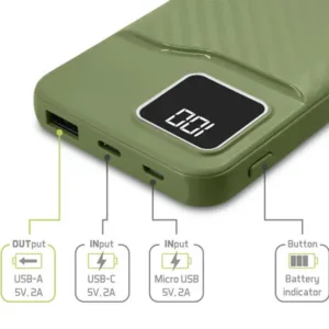 Yksi USB-A-ulostulo jakaa virtaa, samalla kun akkupankkia voidaan ladata kahden sisääntulon kautta: USB-C:n tai micro-USB:n kautta.