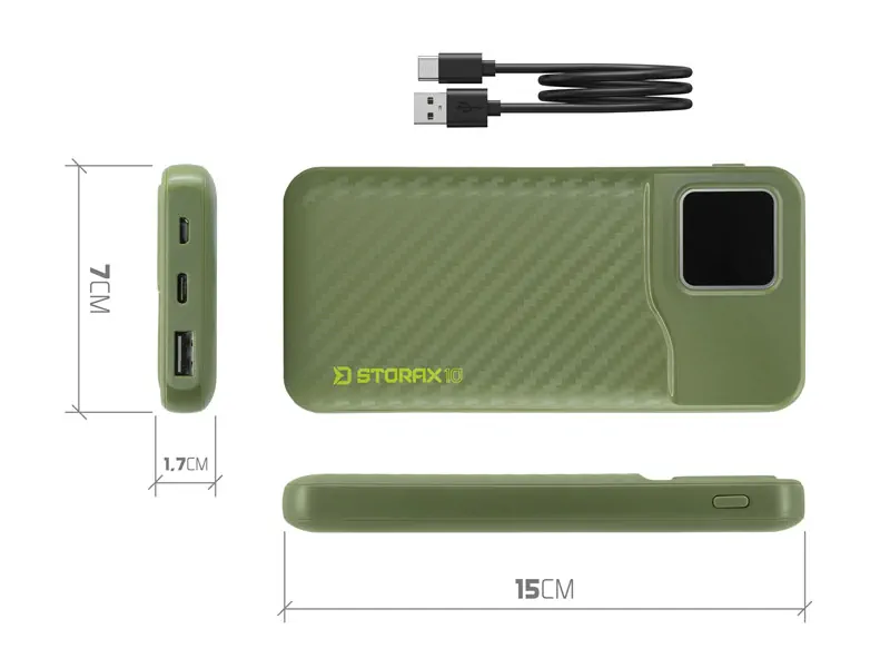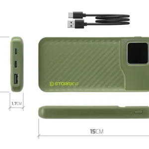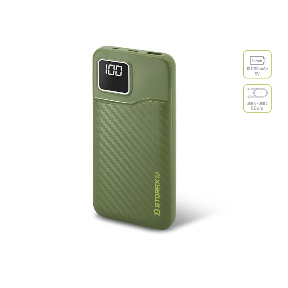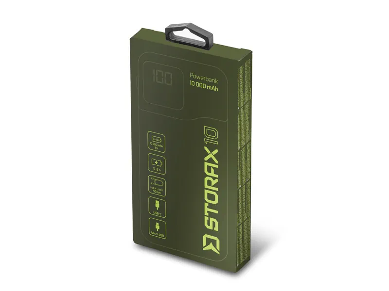 Laitteessa oleva digitaalinen näyttö näyttää tarkan akun varaustason prosentteina, kun sivupainiketta painetaan. Näyttö pysyy aktiivisena myös latauksen aikana, tarjoten jatkuvan yleiskuvan akun senhetkisestä tilasta. StoraX-mallin suuri etu on latausnopeus, joka kestää 5–6 tuntia. Lataus tapahtuu mukana tulevan USB-C-kaapelin avulla.